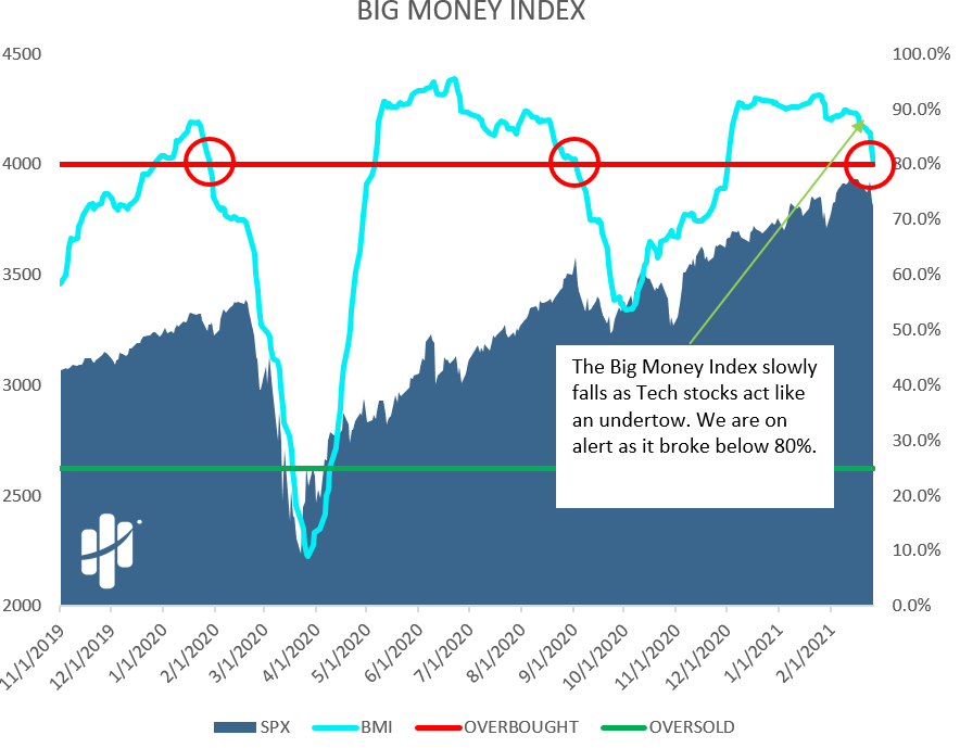 My favorite way to determine where stocks are heading is by looking at the Big Money Index (BMI).