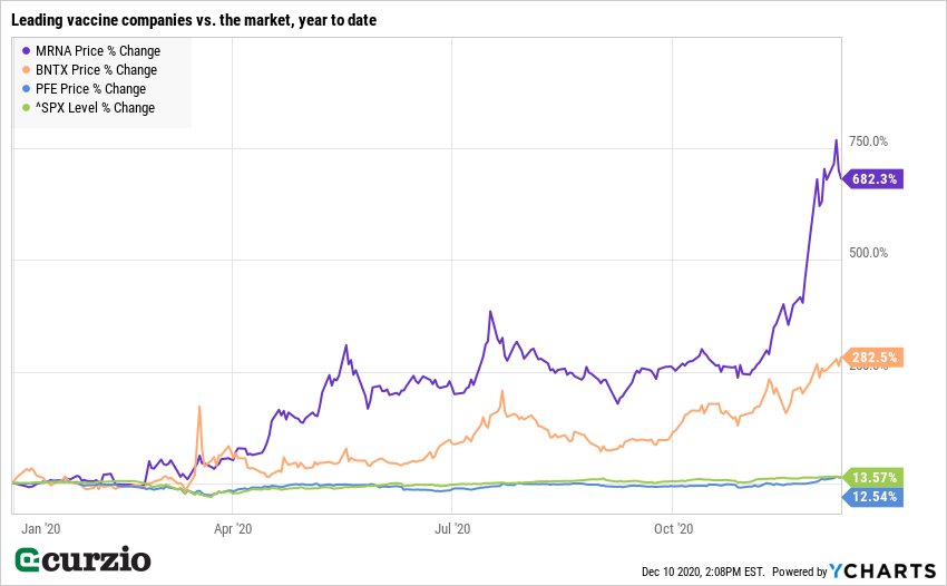 Mass vaccinations have begun… and the market is up on the news. Shares of several major vaccine winners have already rallied multifold this year.