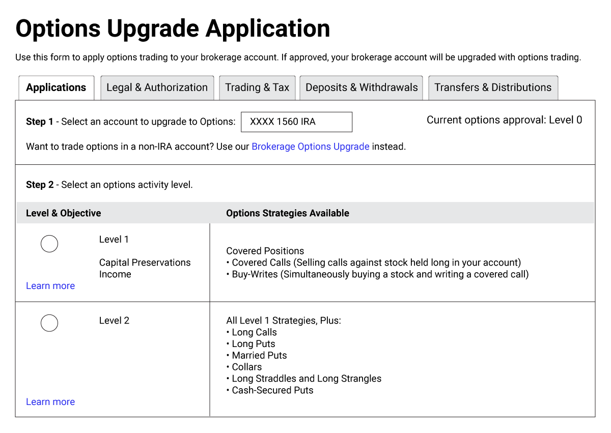 Trading options isn’t as simple as buying a stock outright. You have to apply through your broker for approval.