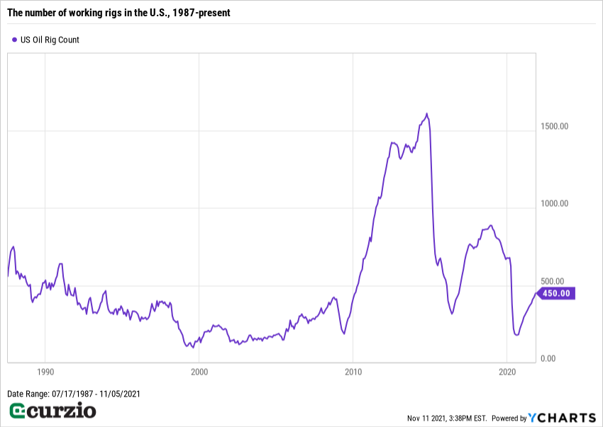 It stopped most travel in its tracks… contributing to even greater excess oil supply—and record-low prices last year. As a result, 2020 saw a severe decline in the price of oil… and a sharp drop in the number of producing rigs.