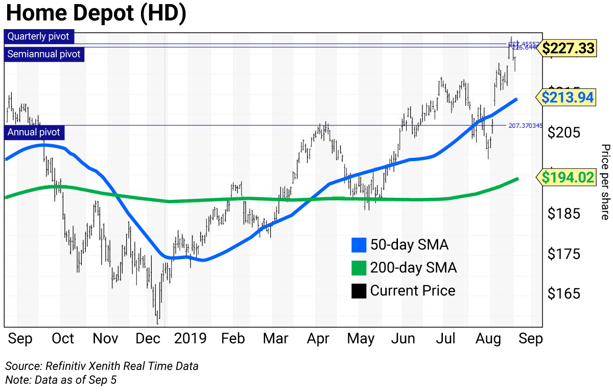 As a result, shares of Home Depot (HD) traded to an all-time intraday high of $229.27 on August 30.
