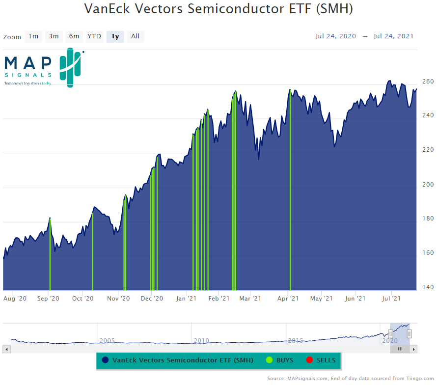 If you’re looking for a way to play more upside in semiconductors, consider owning SMH.