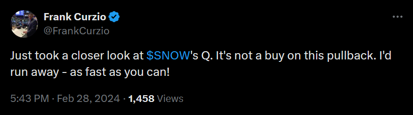 Just took a closer look at $SNOW's Q. It's not a buy on this pullback. I'd run away - as fast as you can!