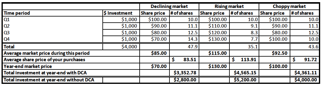 But there’s one simple method you can use to help overcome biases: dollar-cost averaging (DCA).