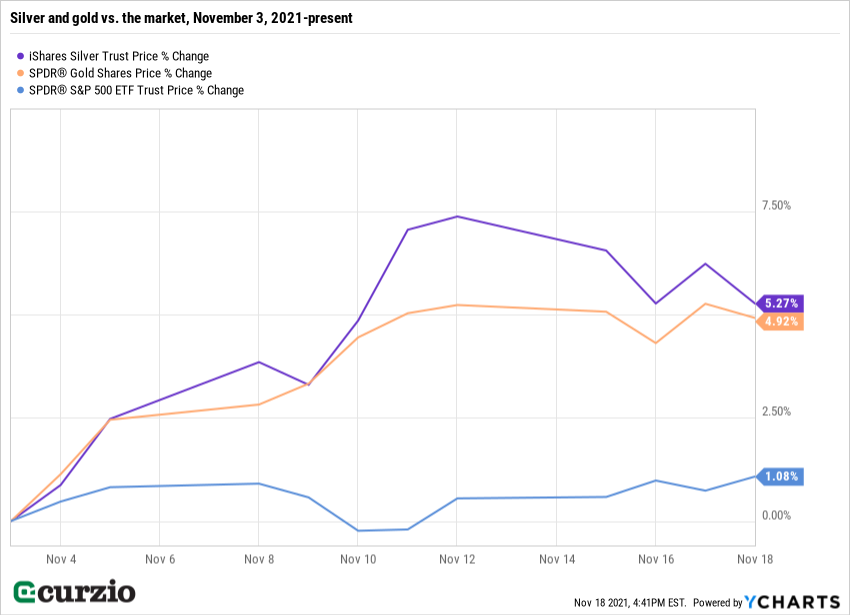 In the two weeks since the Fed’s taper meeting, both precious metals have outperformed the market… with silver outpacing gold.