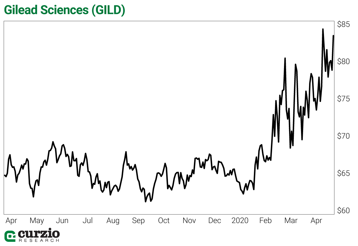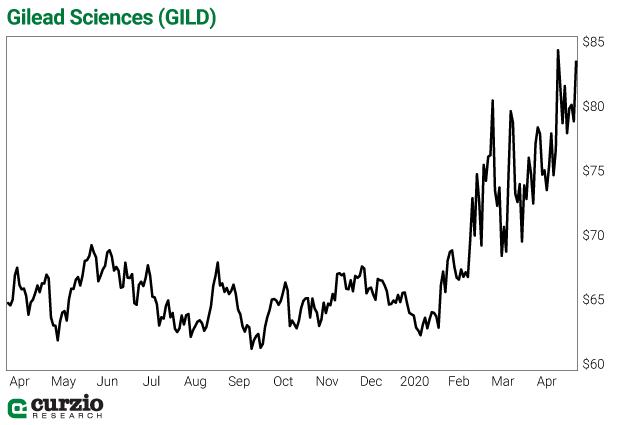 Gilead’s stock rallied too on the news yesterday… up 5.7% higher on the day… and up 28% in 2020.