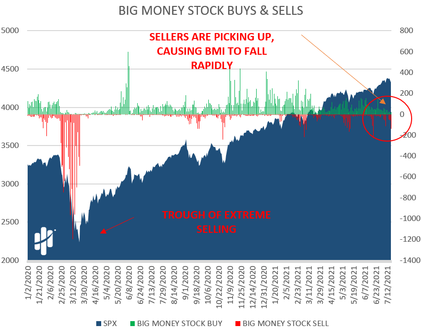 Now, let’s check the Big Money Stock Buys & Sells chart. It gives us another way of looking at the daily buying and selling in stocks.