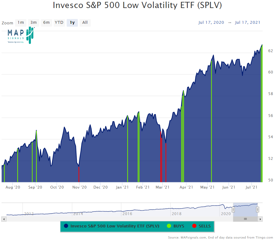 Below is the Big Money chart for SPLV. The recent green bars are showing Big Money buy signals: