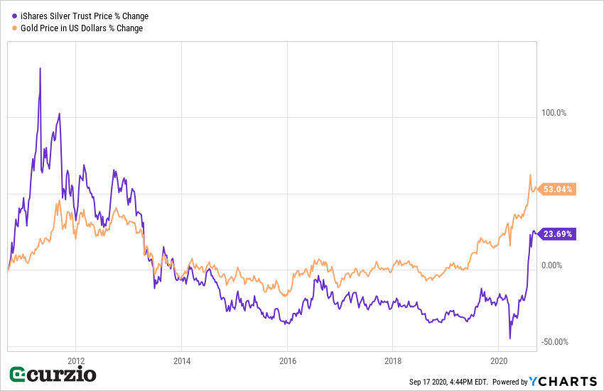 But after lagging gold prices for years, silver is finally entering the spotlight. That’s because it’s also enjoying the tailwind of loose monetary policies.